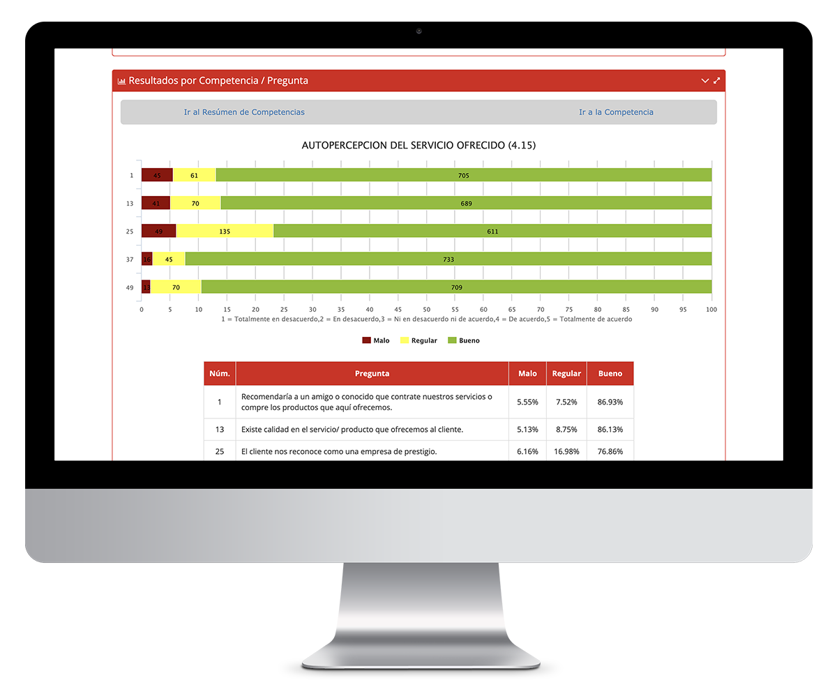 Personalización total: Ajusta preguntas del cuestionario estándar para alinear la evaluación con tus objetivos organizacionales. Cruzar la información en base a criterios pre establecidos: Antigüedad, Género, Edad, Escolaridad, Departamento, Tipo de Contrato, Esquema, Unidad de Negocio, Región, País.